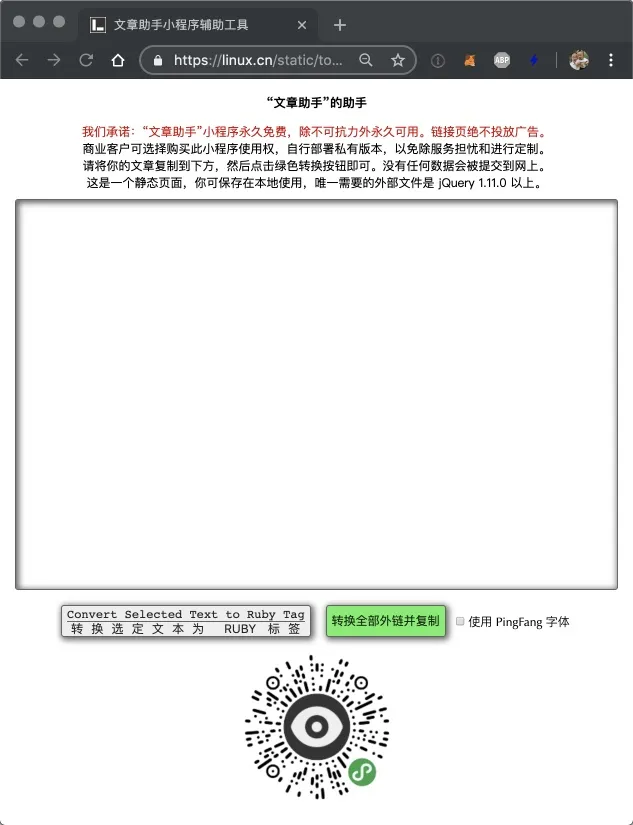 “文章助手”的助手地址如下: https://linux.cn/static/tools/a.html