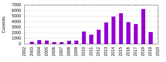 去年,systemd 出现了创纪录的提交数量,但到目前为止,2019 年恐怕很难再次看到突破该记录。到目前为止,今年已有 2,145 个提交,而去年有 6,245 个提交,而 2016 年和 2017 年每年的提交总数不到 4 千个。
