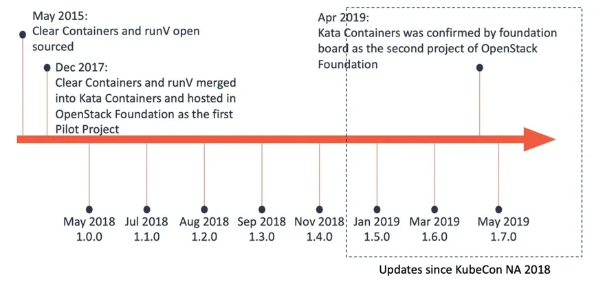 runV 发布的同一个星期,英特尔Clear 容器也发布了。2016 年 8 月份,在西雅图的 LinuxCon 上,王旭和 Clear 团队见面交流,双方在一些细节上面展开合作。在 2017 年 9 月份一个会议上,英特尔软件副总裁、开源技术中心总经理 Imad Sousou 提出项目合并,然后放到基金会里管理。当时大家都觉得这是很好的一个思路。