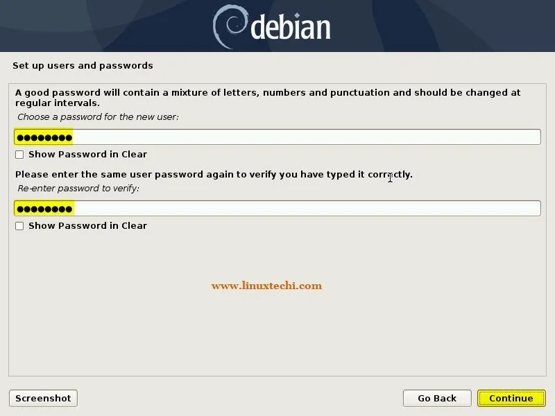 在 “Continue” 上单击,并在接下来的窗口中指定密码。