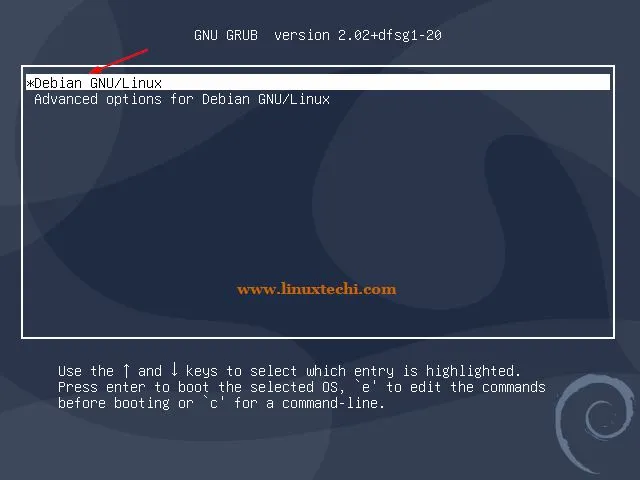 选择第一个选项 “Debian GNU/Linux” 并敲击回车键。