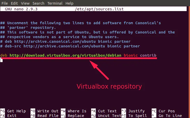 $ sudo nano /etc/apt/sources.list