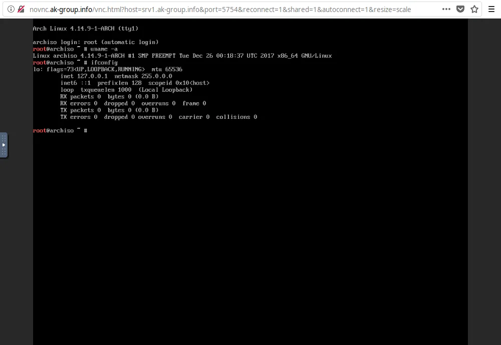 此现场版操作系统会在新浏览器窗口中启动。你可以通过内建的 noVNC viewer 访问它。请在浏览器中启用/允许 DistroTest 网站的弹出窗口,否则无法看到弹出的 noVNC 窗口。