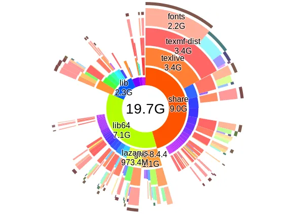 duc 是磁盘使用率检查和可视化工具的集合。Duc 使用索引数据库来保存系统上文件的大小。索引完成后,你可以通过命令行界面或 GUI 快速查看磁盘使用情况。
