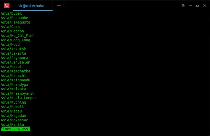 $ timedatectl list-timezones