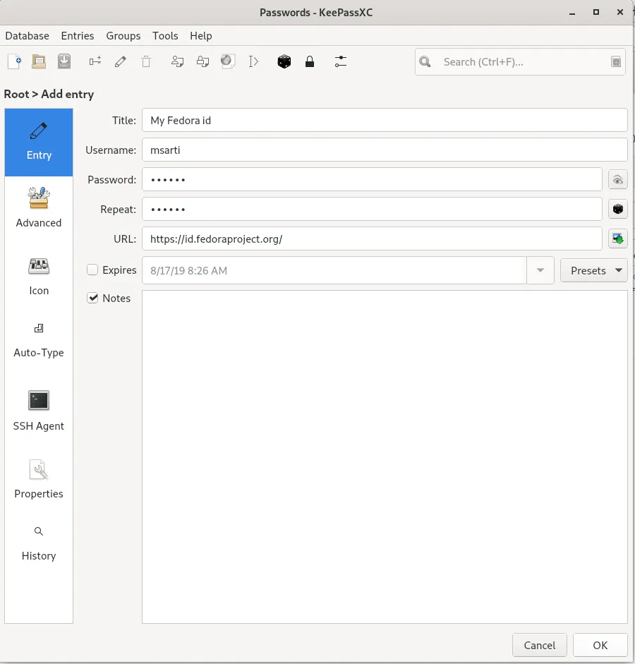 via: https://fedoramagazine.org/managing-credentials-with-keepassxc/