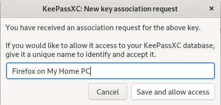 通过这种方式,你可以通过 KeePassXC 获取互联网凭据,而无需将其保存在浏览器中。