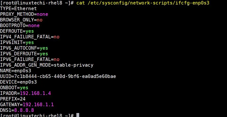 via: https://www.linuxtechi.com/configure-static-ip-address-rhel8/