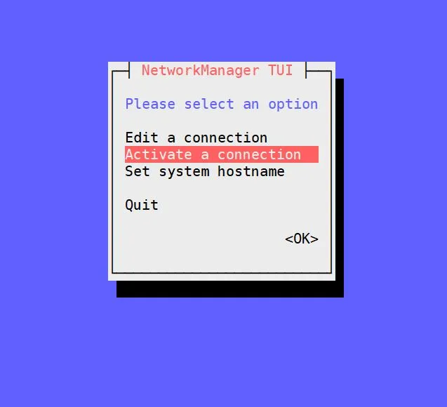 选择确定,然后点击回车。在下一个窗口中,选择 “Activate a connection”,