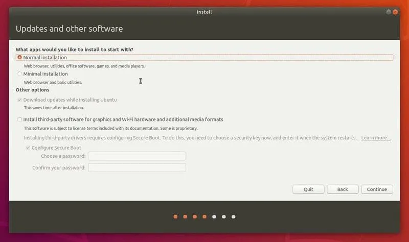 现在我准备安装 Ubuntu 18.04 长期支持版,因为我现在就有这个系统的安装文件。你也可以按照这个教程安装其他的发行版。在最重要的分区之前,前边的步骤都大致相同。