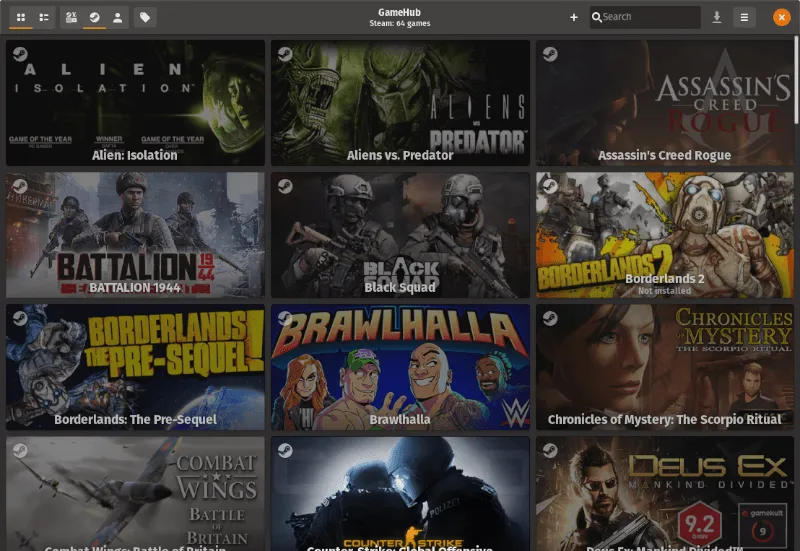对于 Steam,你需要在 Linux 发行版上安装 Steam 客户端。一旦安装完成,你可以轻松将账号中的游戏导入 GameHub。