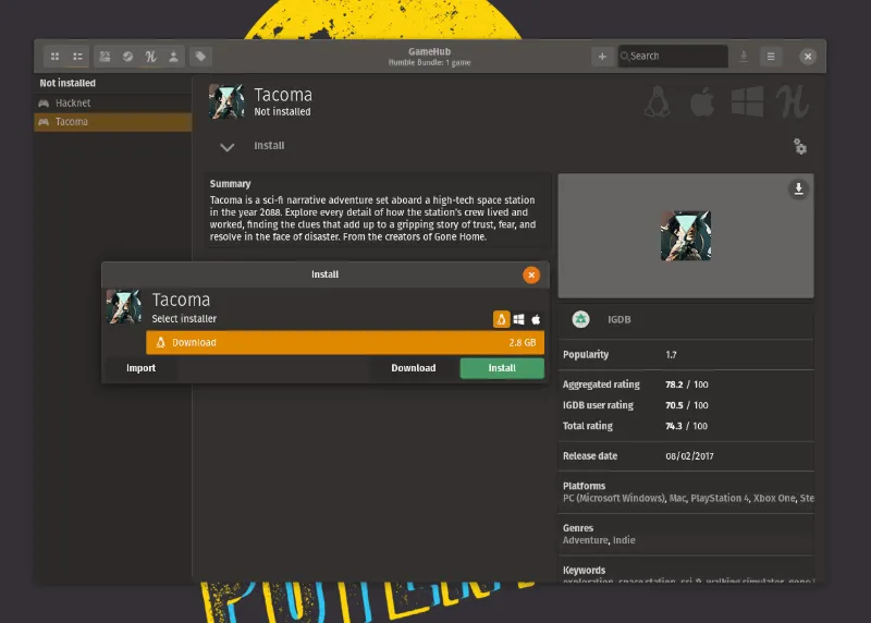 但对于 GOG/Humble Bundle,登录后就能直接、下载安装游戏。必要的话,对于那些不支持在 Linux 上运行的游戏,你可以使用兼容工具。