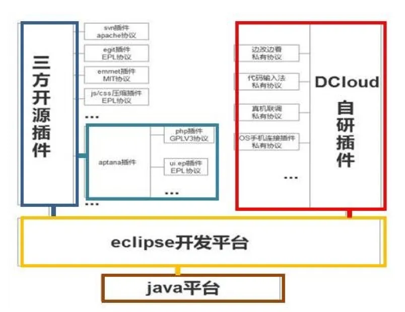 APICloud 和 HBuilder 都是基于主程序 Eclipse 平台,包含第三方开源插件+各自自研插件组成的集成开发环境 IDE。