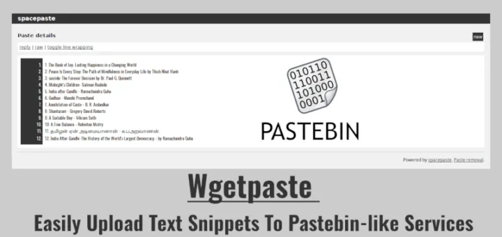 每当需要在线共享代码片段时,我们想到的第一个便是 Pastebin.com,这是 Paul Dixon 于 2002 年推出的在线文本共享网站。现在,有几种可供选择的文本共享服务可以上传和共享文本片段、错误日志、配置文件、命令输出或任何类型的文本文件。如果你碰巧经常使用各种类似于 Pastebin 的服务来共享代码,那么这对你来说确实是个好消息。向 Wgetpaste 打个招呼吧,它是一个命令行 BASH 实用程序,可轻松地将文本摘要上传到类似 Pastebin 的服务中。使用 Wgetpaste 脚本,任何人都可以与自己的朋友、同事或想在类似 Unix 的系统中的命令行中查看/使用/审查代码的人快速共享文本片段。