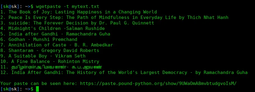 要使用 Wgetpaste 上传任何文本文件,只需运行: