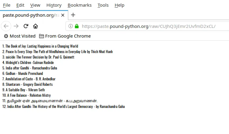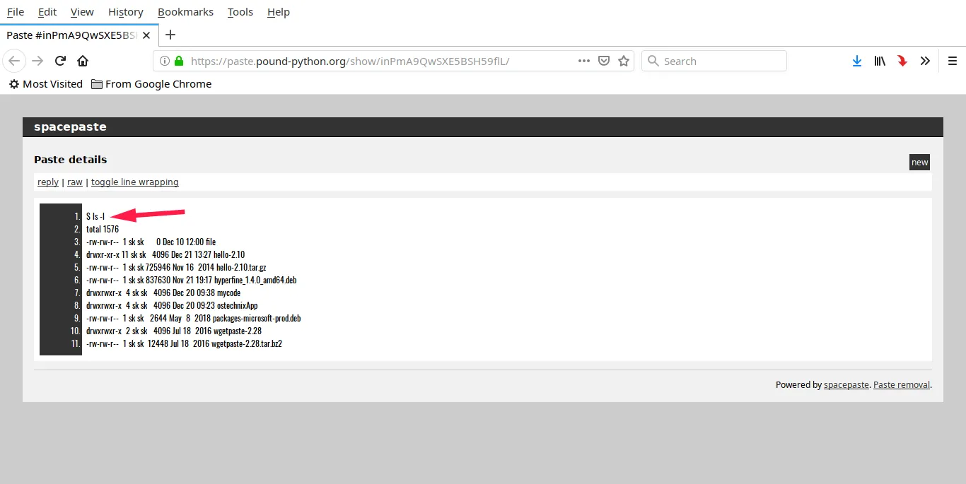默认情况下,Wgetpaste 会将文本片段上传到 poundpython(https://paste.pound-python.org/)服务。
