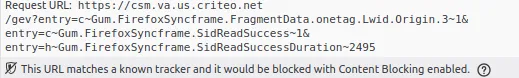 我使用的浏览器是 Firefox,但是 Firefox 默认拦截了很多这种类型的追踪,所以需要修改 Firefox 的隐私设置,才能让这种追踪生效。