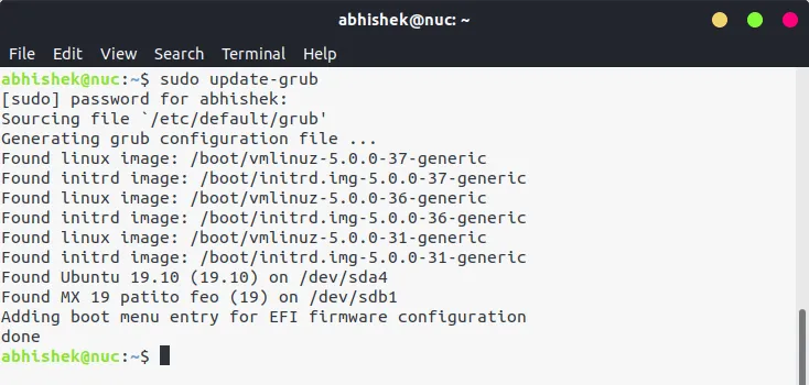 现在,在这种情况中,在 Ubuntu 18.04 上的 grub 需要更新,以便它能够看到 MX Linux