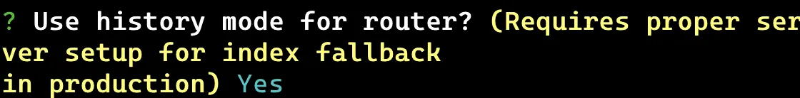 执行过程中,会问你是否需要启用 History Mode,根据需要选取,我使用的是 History Mode。