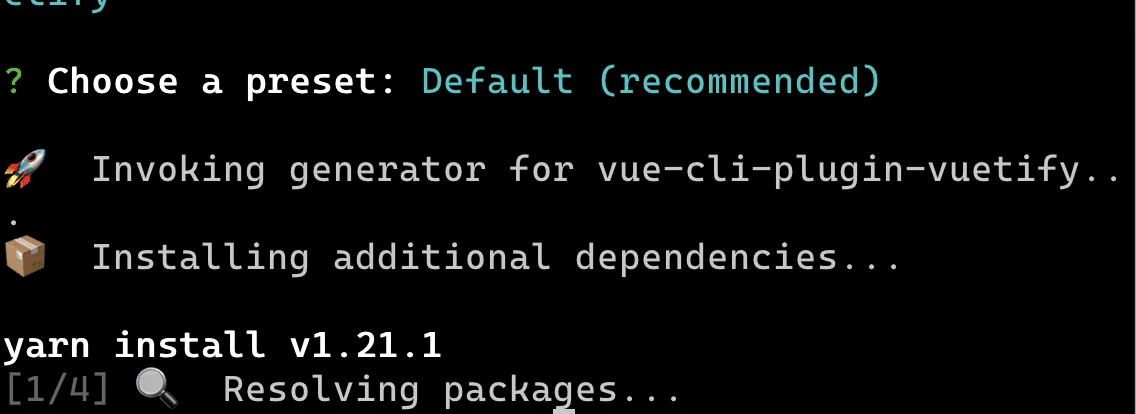 接下来安装的是 Vuetify.js ,由于框架提供了相应的支持,因此在开发时也非常简单,只需要执行如下命令就可以完成初始化。