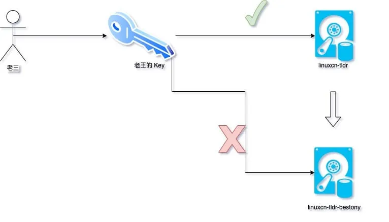 在七牛中进行权限分配的时候,会要求你为 Bucket 设定一个别名,而且名字和已有的名字必须是不同的,这导致我看到的 Bucket 的名和老王创建的 Bucket 名是不相同的。