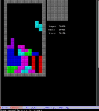 你知道吗,Emacs 捆绑了一个俄罗斯方块的实现?只需要输入 M-x tetris 就行了。