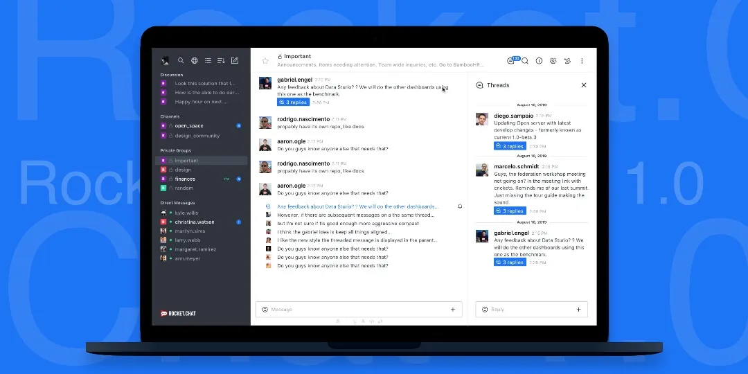 Rocket.Chat 是一个开源解决方案,它提供了一个增强的聊天服务。它包括媒体共享、屏幕共享和视频/音频呼叫支持等协作工具。