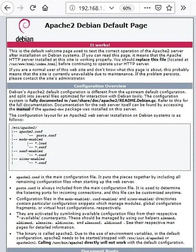 你可以通过在浏览器输入 http://<<YouRpiIPAddress>> 来检查 Apache 是否安装正确: