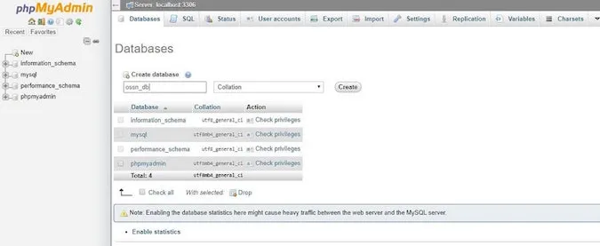 在 OSSN 中 phpMyAdmin 不是强制安装的,但我建议你安装,因为它可以简化数据库的管理。