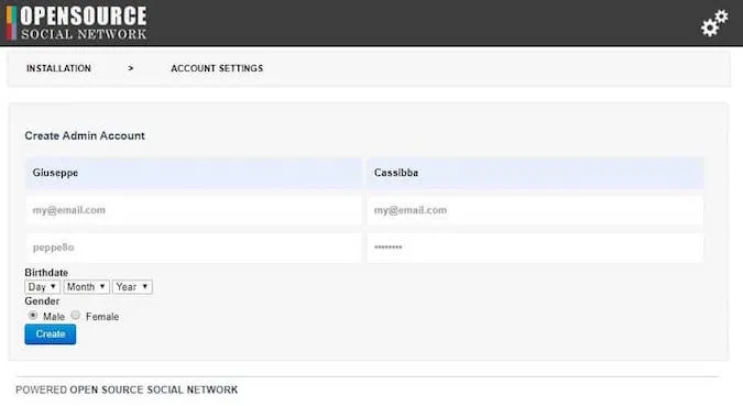 输入数据库用户名,密码和你选择的数据库名字,记得也要输入 OSSN 数据文件夹名称。点击安装。