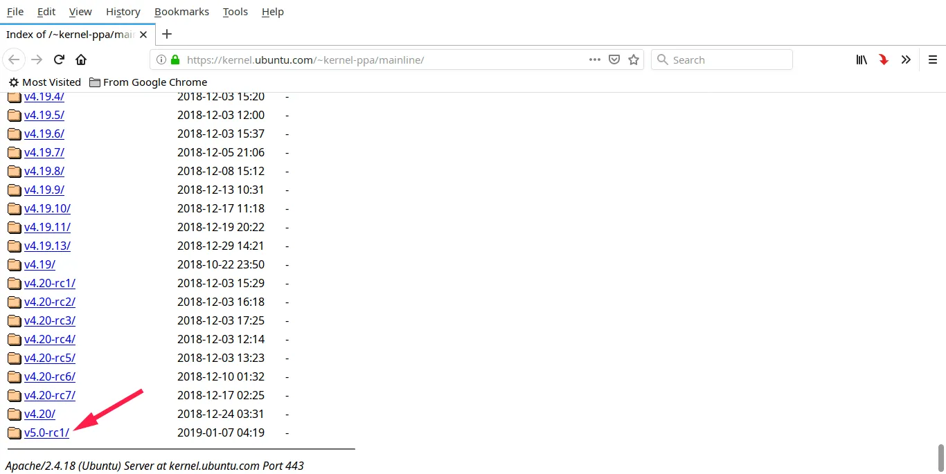 这个方法可以帮助你从 kernel.ubuntu.com 网站手动下载可用的最新 Linux 内核。如果你打算安装最新版(而不是稳定版或者正式发布版),那这种方法对你会很有用。从以上链接下载 Linux 内核版本。编写这个指南的时候,最新的可用版本是 5.0-rc1,最新的稳定版是 v4.20。
