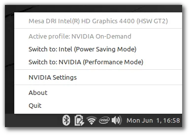 在 Mint 20 中,Nvidia prime 小程序会显示 GPU 渲染器。你也可以直接从系统托盘中的菜单中选择切换到哪块卡。