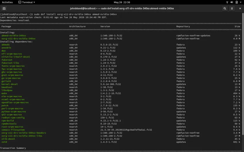 与大多数 Linux 发行版一样,Fedora 并未默认安装专有的 Nvidia 驱动。