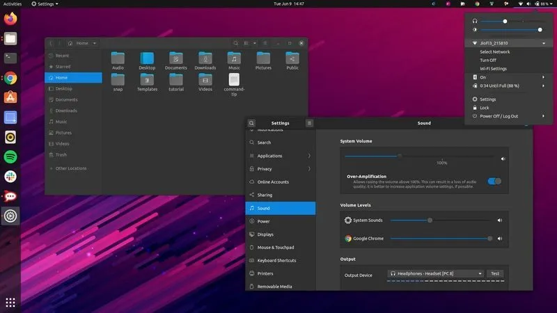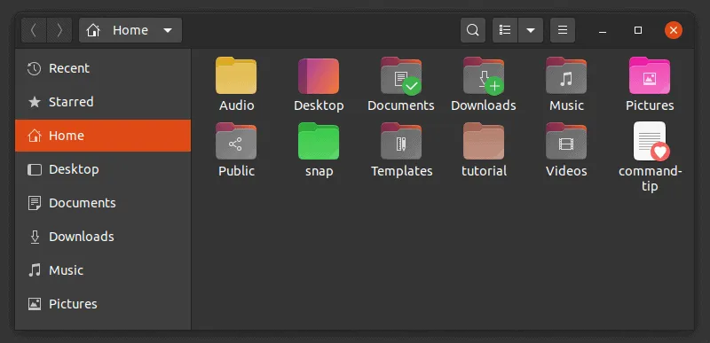 Ubuntu 20.04 中默认的 Yaru 主题赋予它优美、现代的外观。默认 Yaru 主题中的文件夹是紫色的外观,以与 Ubuntu 的品牌保持一致。
