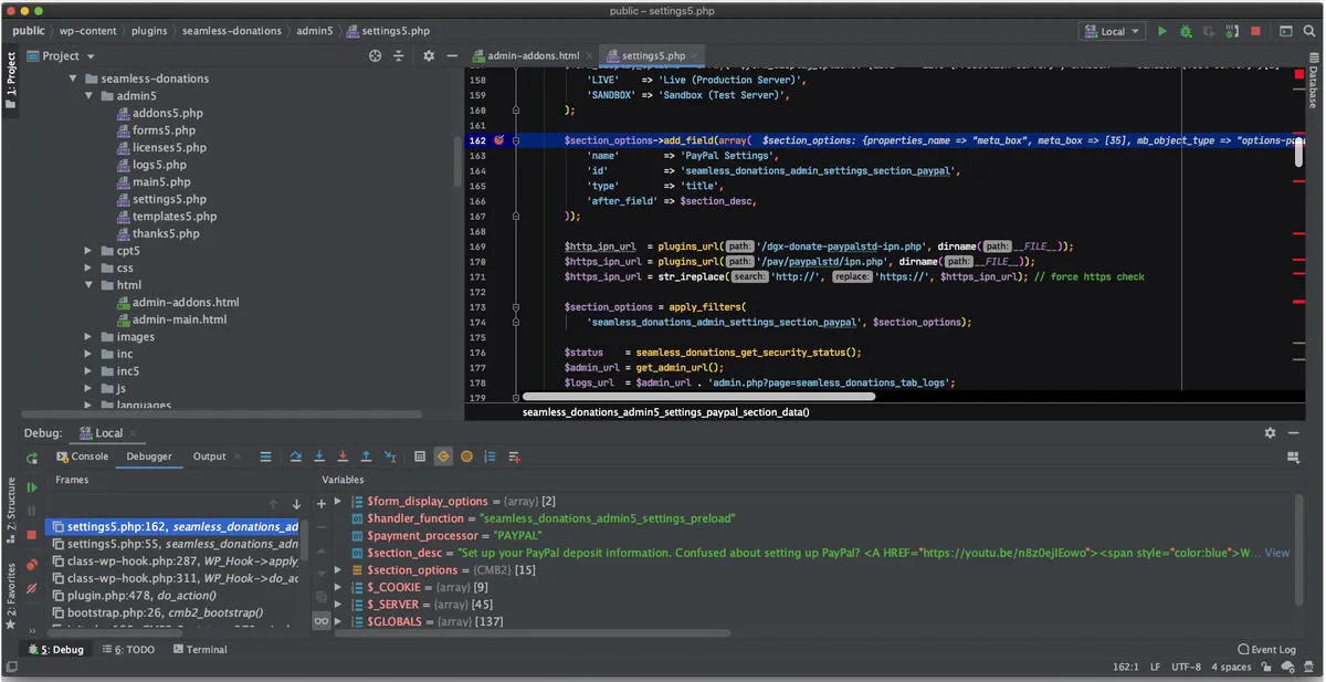 我选择的武器一直是 PhpStorm。我已经使用它多年了。它有一个优秀的集成调试环境,可以进行本地和远程调试。它还集成了我日常使用的各种功能,从它自带的终端窗口到文件同步,再到版本控制和逐行文件历史记录。另外,它还有丰富的插件可供选择,可以扩展和提升编码体验。