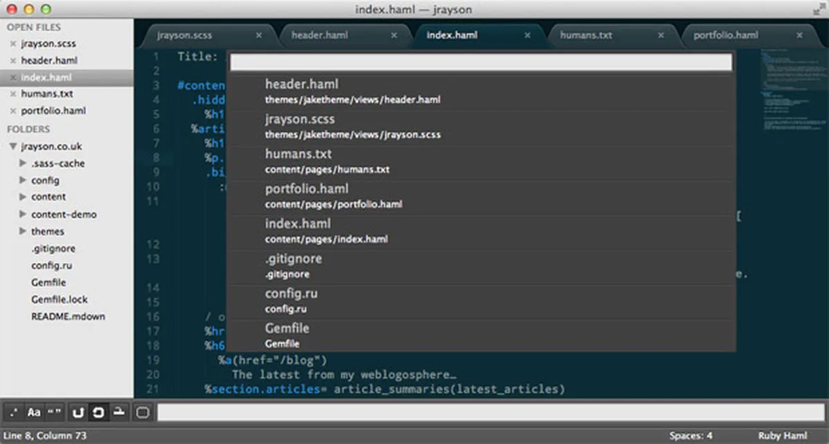 我之前就提到过 Sublime Text,很多编码者都把它作为主要的开发环境。它几乎支持一系列传说中的插件和附加组件。当我想在 PhpStorm 固有的项目结构之外编辑项目文件时,我使用 Sublime Text 作为一个快速编辑器。它的速度快,反应灵敏,而且相当有特点。