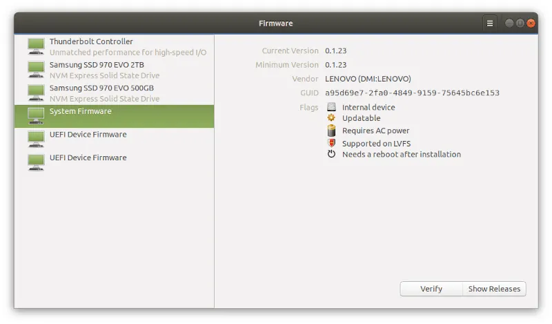 在 MATE 20.04 中,你会注意到有一个新的固件更新器,它是 fwupd 的 GTK 前端。你可以使用这个更新器来轻松地管理你的固件驱动。