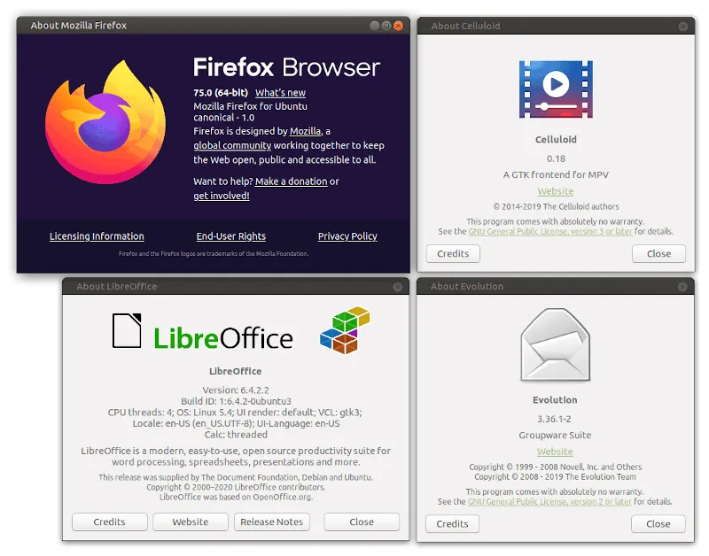 Ubuntu MATE 20.04 也包括了众多预安装的软件包/应用程序的升级包。
