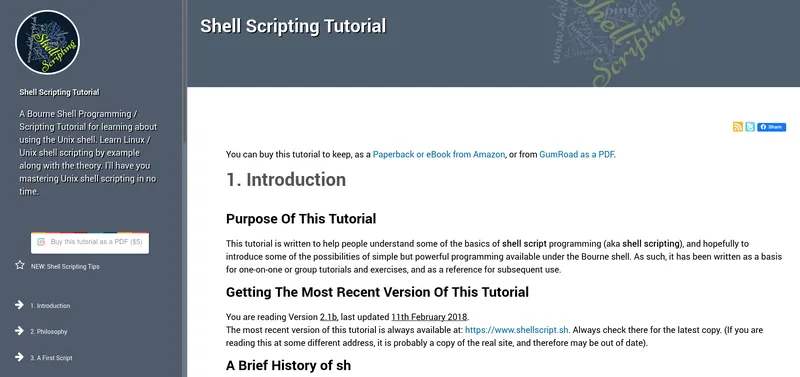 “Shell 脚本编程教程” 是一个完全专注于 shell 脚本编程的网站。你可以选择免费阅读其中的资源,也可以购买 PDF、实体书籍和电子书来支持他们。