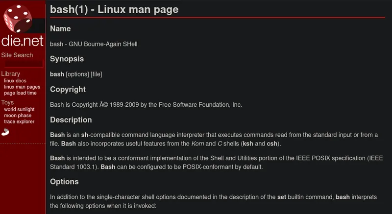 尽管它不是专门为你掌握 shell 脚本编程而量身打造的,它依然是一个你可以免费使用的重要网络资源。你可以选择访问在线手册,或者直接打开终端然后输入以下命令: