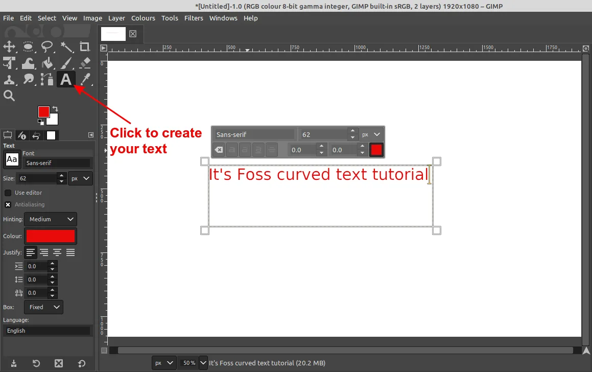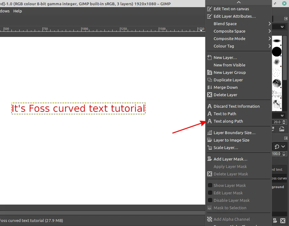 via: https://itsfoss.com/curve-text-gimp/