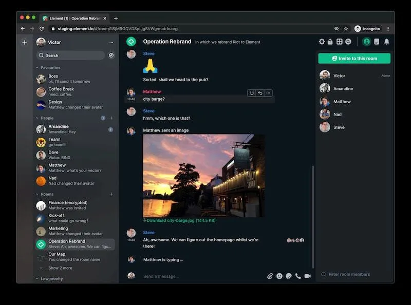 最近的公告也表明,此举不仅仅是简单的改名。Element 还发布了“新一代安卓版 Matrix 客户端”。该客户端的前身是 RiotX,现在改名为 Element。(还有呢?)它对以前的客户端进行了彻底的重写,现在支持 VoIP 通话和小部件。Element 还将在 iOS 上推出,支持 iOS 13,并提供“全新的推送通知支持”。