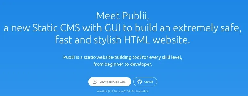 Publii 是一个令人印象深刻的开源 CMS,它能使生成一个静态网站变得很容易。它是用 Electron 和 Vue.js 构建的。如果有需要,你也可以把你的文章从 WorkPress 网站迁移过来。此外,它还提供了与 GitHub 页面、Netlify 及其它类似服务的一键同步功能。