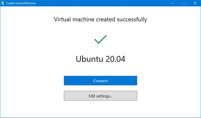 虽然你可以通过点击“连接”立即开始,但如果你的 Windows 10 主机上有足够的资源,我建议你点击“编辑设置”,以便你可以先进行一些调整。