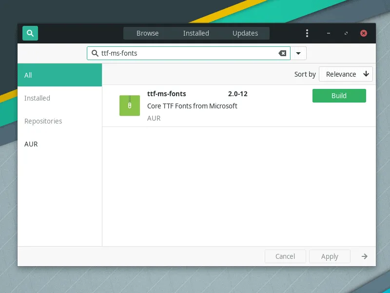 如果你也需要使用微软字体,可以从 AUR 中取得这个软件包。如果你想要在命令行中管理 AUR 软件包,可以选择安装一个 AUR 助手。