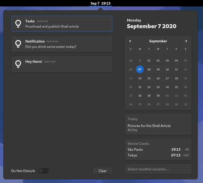 随着最近一次的 GNOME 更新,通知区整洁了很多,但是现在随着 GNOME 3.38 的到来,你终于可以通过日历区域的正下方访问日历事件,使事情变得方便且容易访问。