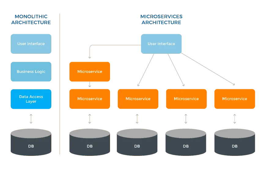 单一体系架构 vs. 微服务架构 (图片来自 [6] )