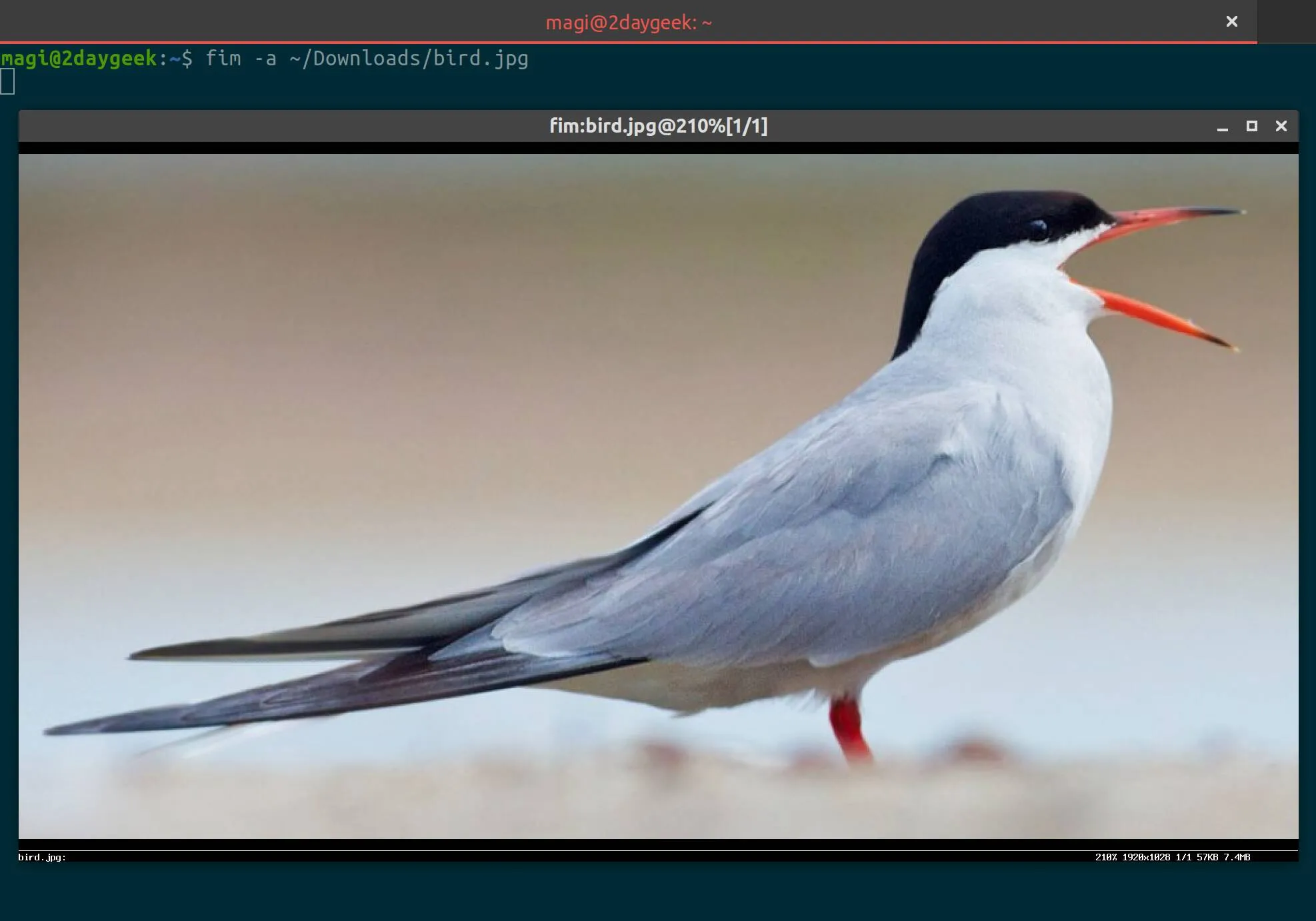 要查看任何图像文件,请运行 display 命令,如下所示。你可以按下 Esc/q 按钮关闭图像: