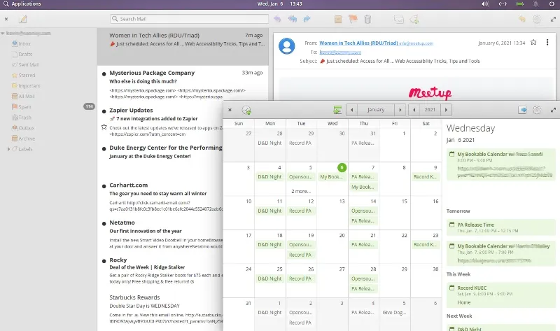 ElementaryOS 的邮件和日历应用(Kevin Sonney, CC BY-SA 4.0