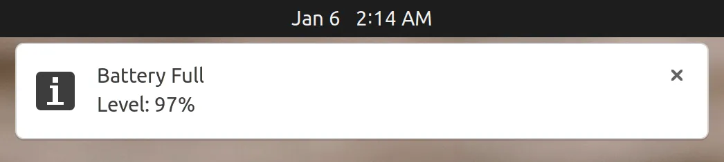 notify-send "Battery Full" "Level: ${battery_level}%"